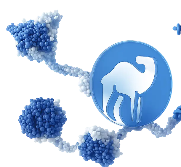 Camels thrive in heat, dehydration, and metabolic scarcity that disable most mammals. Their physiology couples extreme stress resilience with unique immune features – including heavy-chain-only antibodies (nanobodies) that are naturally small, stable, and tissue‑permeable. Jamalone™ harnesses this toolkit to inform drug design, delivery, and durability.